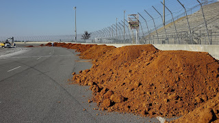 It will be a massive undertaking which will take up to maybe two weeks. That's right folks, red Georgia clay is now being placed over the asphalt at the South Georgia Motorsports Park oval track. When it is all said and done, expect up to 600 loads to be delivered and dumped. That should give the racing surface about 12 inches of clay. Deep Dixie Racing was able to get a few photos of how the track looked towards the end of today.